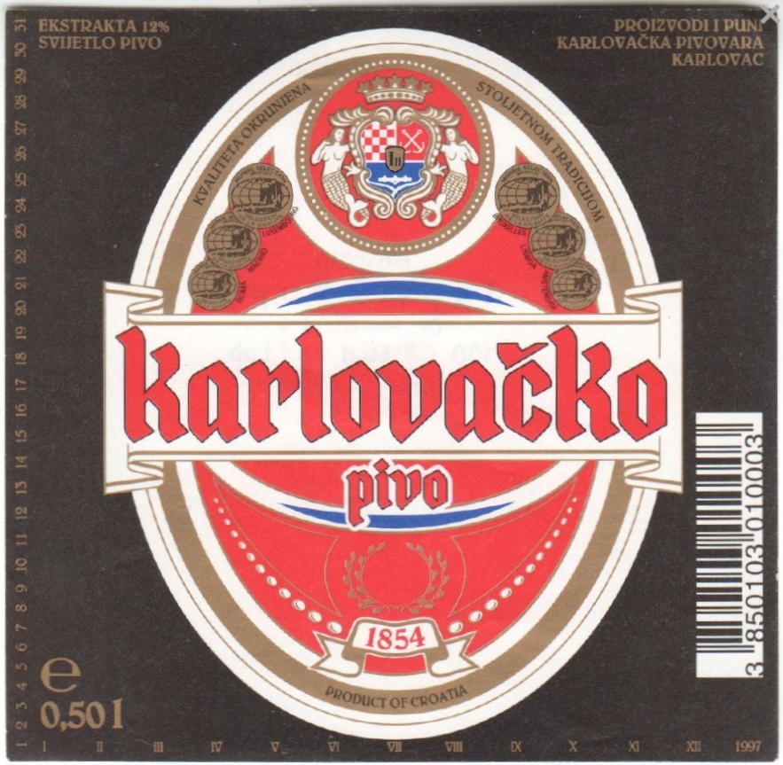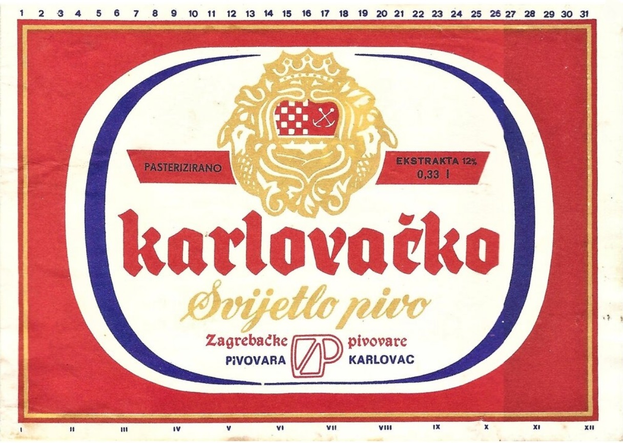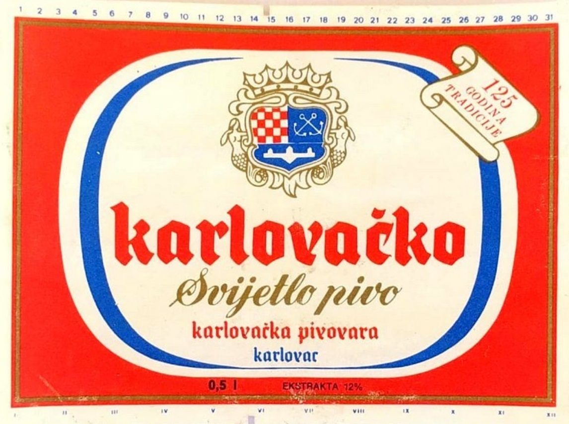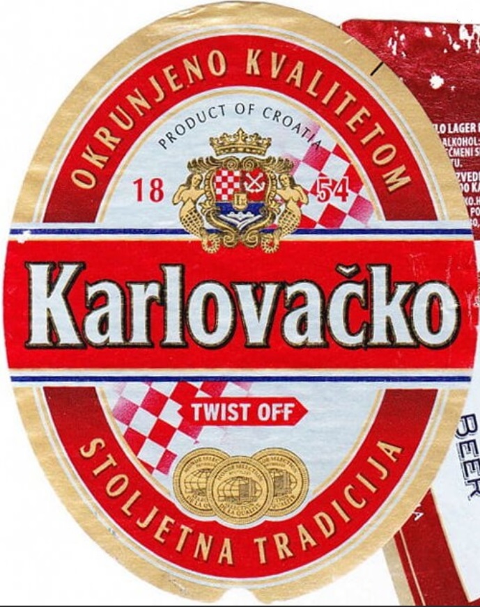 Logo evolution, minute and gradual changes to the logotype over time, are also important method for dating caps. Heraldic part of the logo for Karlovačka brewery had the upper right part with anchors on the blue background from mid 1970's, up to late 1980's, proven by included bottle labels (1979, 1984, and 1989. for 125th, 130th, and 135th anniversary). Interesting thing about anchors is that the logo contained 2 crossed anchors since its creation, as they are in the coat of arms of the city of Karlovac, to be changed in 2015. when pair of anchors was replaced by a single one. Since the early 1990's (but not in 1991, the first year of Croatian independence), a small shield was added in the middle of the big shield with initials "I II" (Josip II), as is on the coat of arms of Karlovac. Year 1997. was also very interesting, since 3 details of the logo changed: 1. ribbon with year 1854 under the heraldic shield disappeared, 2. position of diacritic changed in letter "č" of the word "karlovačko", and 3. letter 'v' changed. Even the word "karlovačko" was changing from the 1960's to become in only 2003. "KARLOVAČKO", and then to continue as "Karlovačko" (in different font) until present.
