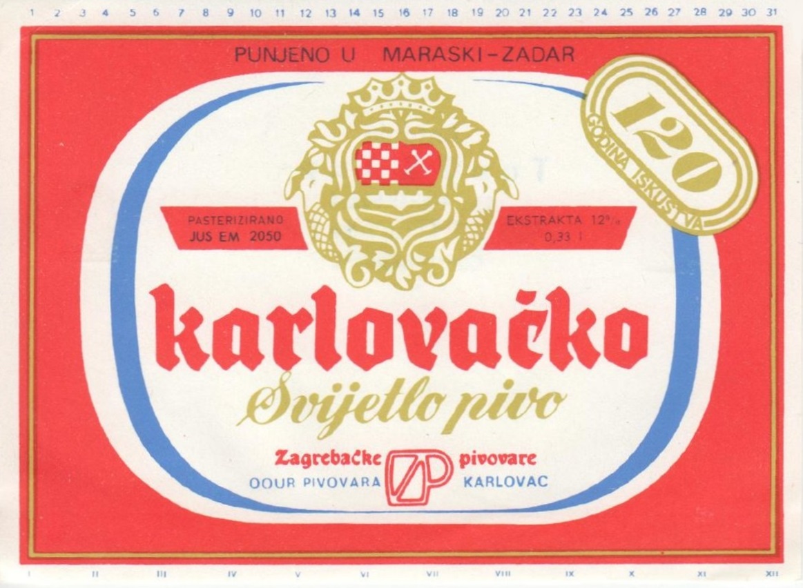 In 1971. Zagreb, Daruvar and Karlovac breweries were integrated into RO Zagreb Brewery (Zagrebačke pivovare). The company consisted of six OOURs - Breweries Karlovac, Daruvar, Zagreb and Otočac, and Pogon Županja and Labin. It employed about 1,600 workers. The disintegration of the company occurred in 1977. due to unresolved joint appearance on the market, and since then Karlovačka pivovara has operated independently.