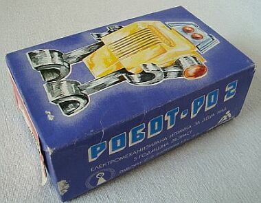 EMI factory, part of "Mladost" group ("youth" in Slavic languages), that was producing this robot, was in the toy industry between 1971. and 1991., later privatized and moved away from toys, so most of the robots we see today are from the 1980's. According to EMI's catalogue there were 3 versions: RO 1 with single eye and elbowed arms, RO 2 with 2 eyes and huge hands, and RO 3 with more round body, different legs than the previous two, arms with pinching hands (vs. wrench ones in previous two), and insect like eyes and head. Their nicknames given by collectors are Cyclops, Bucket head and Big ears. Based on EBay auctions and YouTube clips, Bucket head is the most prevalent, while Cyclops and Big ears are more rare. Close inspection finds RO 3 to have more modern battery contacts, cover and ON/OFF switch, and having the highest number in the series it is easy to conclude that it was designed and its production started by the end of the 1980's. Since the toy production in the factory ceased beginning of the 1990's, not sufficient number of RO 3 was produced, explaining their rarity. Likewise, RO 1 was the oldest, soon replaced and outnumbered by RO 2, making him also more rare.