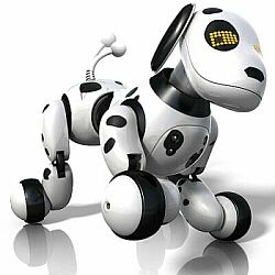 tail, swings fast across the arena, attacking everything in his path - scary, but not too much www.youtube.com/watch?v=__5gEjz2aes The other robot in this segment, in hard contrast to Roboreptile, is a cute puppy Zoomer (25 cm long). Kids alternate playing with one and the other toy as they approach their end of the arena. Robots are at all times in autonomous mode, while Zoomer occasionally shows tricks when Robomaster invokes voice commands he understands. Zoomer loves to be petted on the chest and chin, barks and swings, waggs his tail. www.youtube.com/watch?v=Sz6uEFdJckA |
